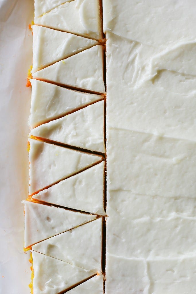 Cut bars into triangles. I cut 2 1/2 inch rows and then cut each row into triangles for cute little sugar cookies.