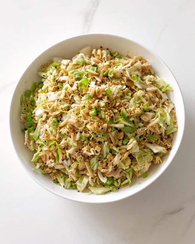 This crunchy Ramen noodle salad is the salad I had at my bridal shower. Ever since then it has held a special place in my taste buds. This makes a lot so it’s one of the best salads for a crowd.